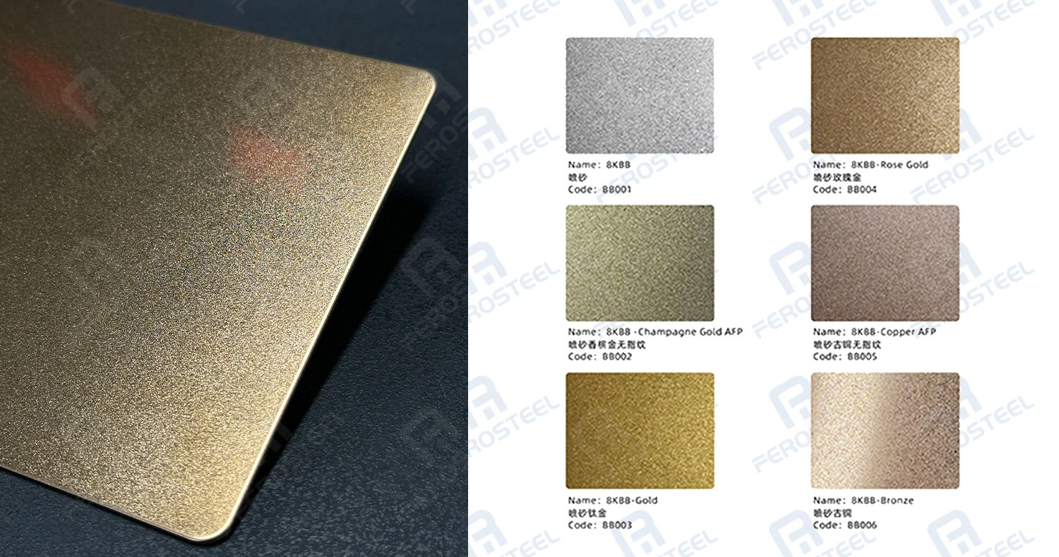 Decorative bead blast stainless steel panels combine sandblasting with PVD color coating, creating luxurious finishes such as gold, bronze, black, and rose gold.